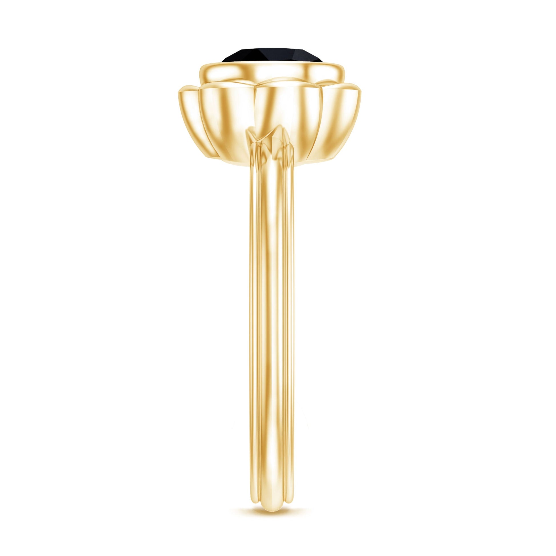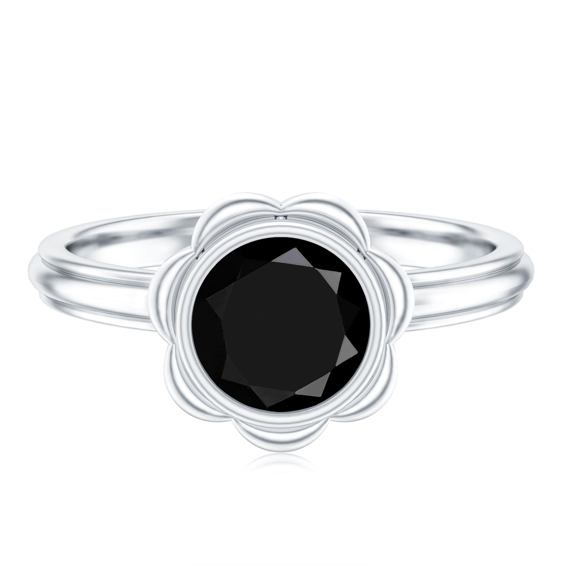 The Black Onyx Engagement Ring is a stunning design inspired by nature, bringing beauty back to life. With its harmonious details, it tells a unique story. At its heart is a 7 MM Round Shape Black Onyx set in Bezel Setting, surrounded by metal petals resembling a flower. This Nature Engagement Ring embodies balance and tranquility, celebrating love in its purest form. With a subtle touch, this Flower Engagement Ring features a floral pattern that adds a touch of elegance to its overall appearance. This floral inspired design is both captivating and timeless, making your proposal unforgettable. The show-stopping Solitaire Engagement Ring is a romantic piece of jewelry that reflects the wild beauty of nature. Whether you are gifting it or proposing to your forever love, this Black Onyx Ring comes beautifully packaged in an elegant jewelry box and is available in US sizes 3 to 13. Romantic, graceful, and charming, this ring is a love story blossoming on your finger.
