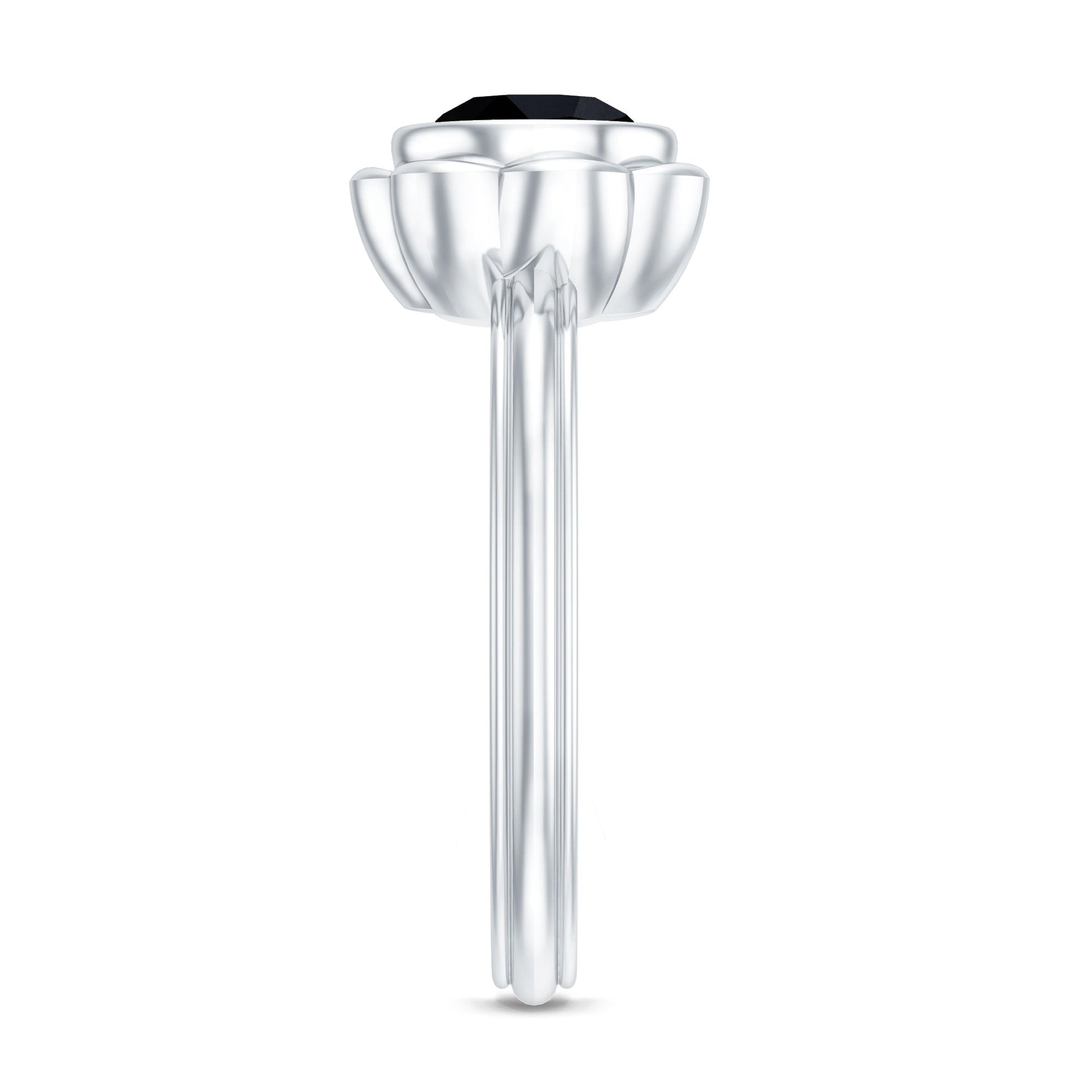 Make her feel cherished with a ring that radiates love and elegance. This stunning Lab Grown Black Diamond Engagement Ring is crafted to honor the most significant moments in life. At its heart lies a 7 MM round cut lab grown black diamond, shining with incredible clarity and brilliance. Encircling the black diamond are beautiful floral petals made from hallmarked metal. The flower inspired design brings a romantic flair and accentuates the beauty of the center stone. Together, they form a graceful appearance that feels both timeless and contemporary. The band is simple and made for everyday comfort while still looking luxurious. Meticulously crafted, this Flower Engagement Ring merges nature-inspired beauty with classic elegance. Whether for a proposal or a special event, this Black Stone Engagement Ring embodies the essence of love blooming with every look. Available in various sizes for the ideal fit, this Solitaire Ring is a breathtaking symbol of your commitment and love, a piece that will shine with memories for years ahead.