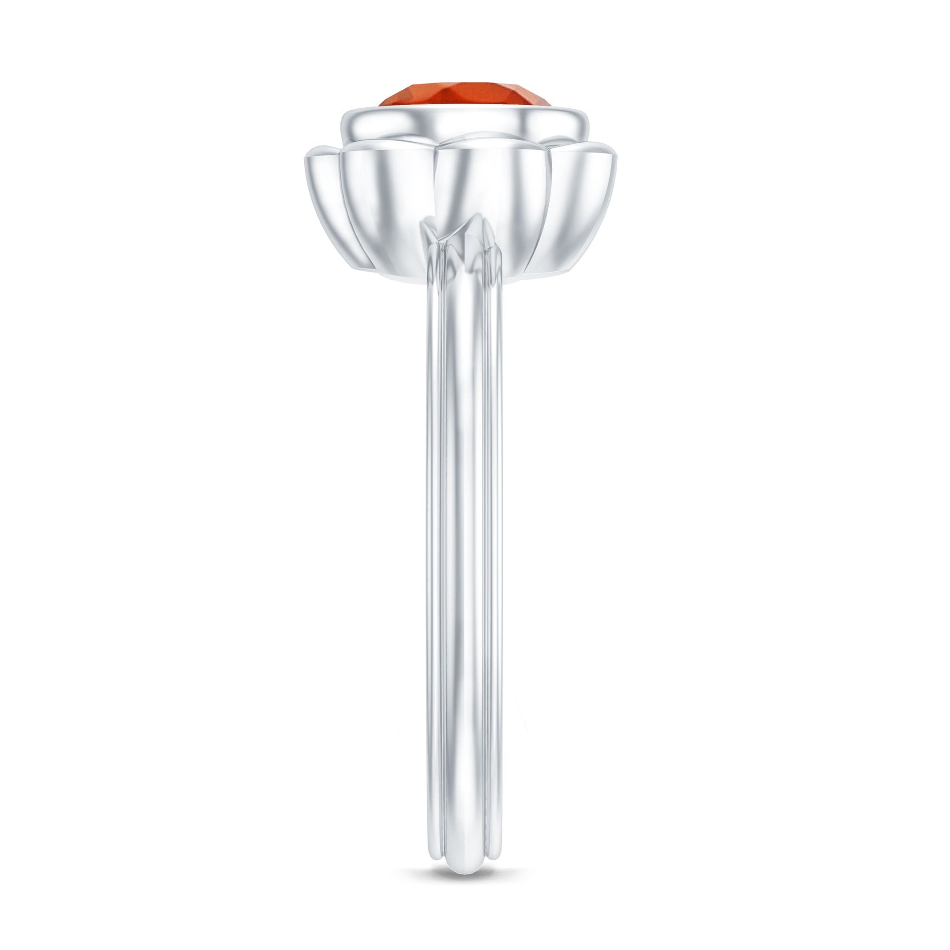 Inspired by fiery color and blooming beauty, this Fire Opal Engagement Ring offers a striking blend of romance and artistry. Showcasing a 7MM round fire opal, secured in a protective bezel setting that frames the stone while allowing its natural vibrancy to shine. Fire opal is known as the October birthstone, making this Solitaire Engagement Ring especially meaningful for birthdays, anniversaries, or heartfelt proposals. Surrounding the gem, sculpted metal petals form a floral shape, giving the ring a graceful and nature-inspired presence. The flower design adds dimension and character, creating a look that feels expressive and thoughtfully crafted. Fire opal is often associated with passion, creativity, and confidence, bringing deeper symbolism to the design. The band is simple and stunning, offering a comfortable fit suitable for everyday wear. Perfect as an engagement ring or a meaningful gift, this Fire Opal Flower Ring blends bold color with elegant design.