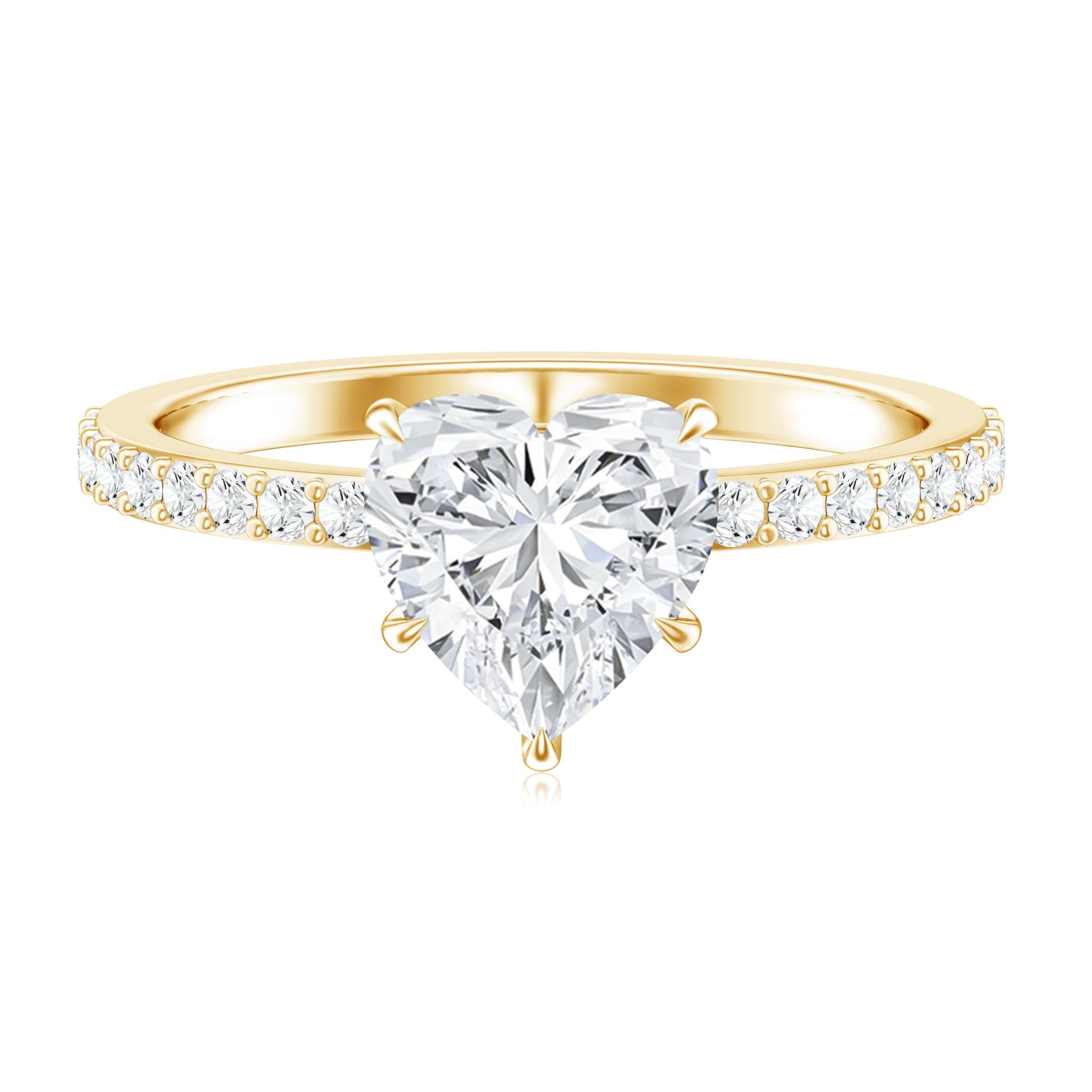 Love has a way of speaking without words, and this Heart Shape Diamond Ring says it beautifully. Crafted with romance in mind, this elegant piece features an eye-catching 8MM heart shape lab created diamond secured in claw setting that allows the stone to shine with incredible fire and brilliance. Graded EF-VS, the lab grown diamond reflects clarity and sparkle that feel as pure as the promise it represents. Adding to its charm, shimmering side stones line the band and lead to a hidden halo tucked beneath the center diamond. This subtle detail creates a surprise glow that reveals itself with every movement, giving the ring extra personality. The balance of timeless design and modern accents makes this Lab Grown Diamond Engagement Ring unforgettable from every angle. Thoughtfully crafted and comfortable to wear, this Solitaire Heart Ring is available in sizes 3 to 13 for a fit that feels just right. Lab grown diamonds offer the same beauty and durability as mined stones, paired with a modern, mindful approach. Presented in a signature jewelry box and accompanied by a certificate of authenticity, this 2 CT Diamond Ring is a memory waiting to be made and a symbol of love meant to last.