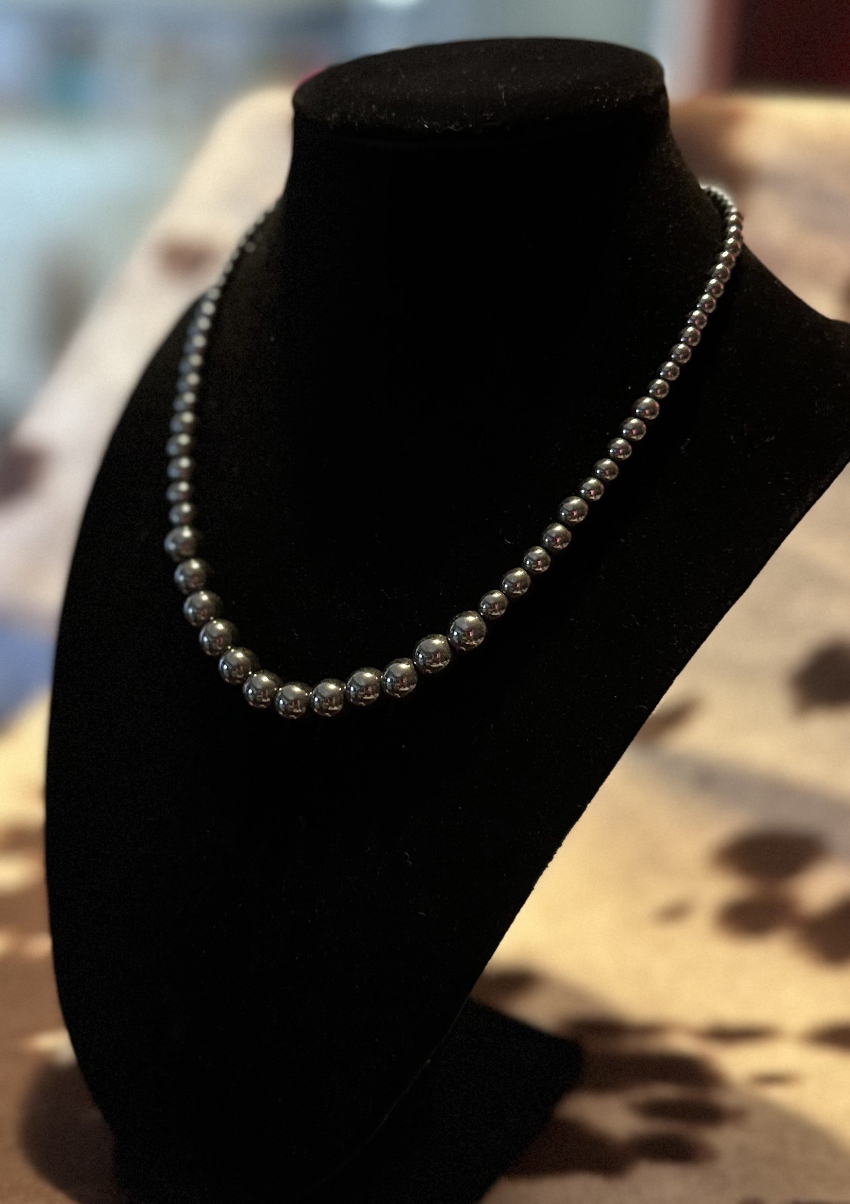 Meet the Coal Creek Necklace – a striking statement of silver with just the right touch of edge and elegance. This handmade piece features a beautiful gradient of darker silver beads, gradually increasing in size as they reach the front for a bold yet refined look.