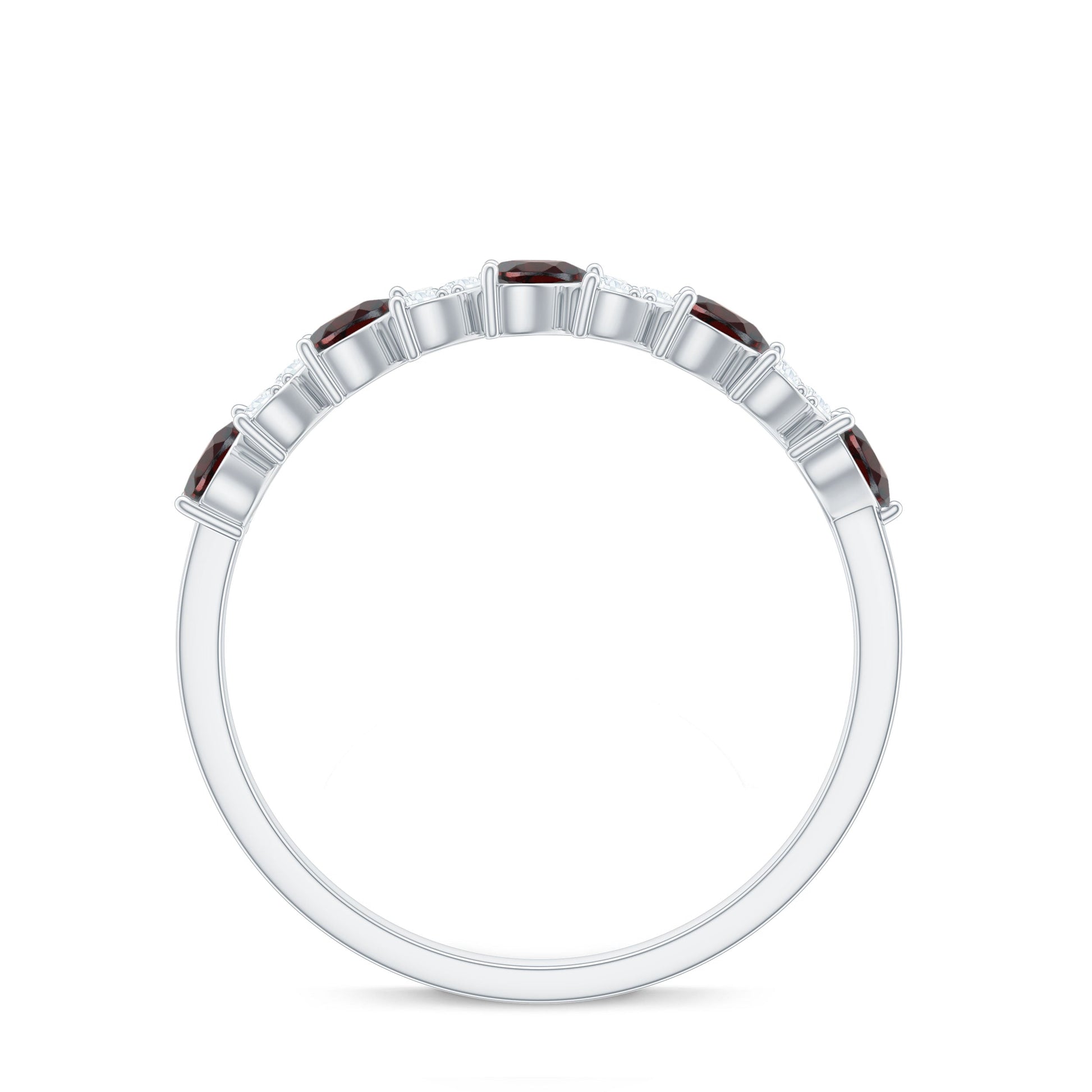 Natural Garnet Diamond Heart Eternity Ring in East West Style