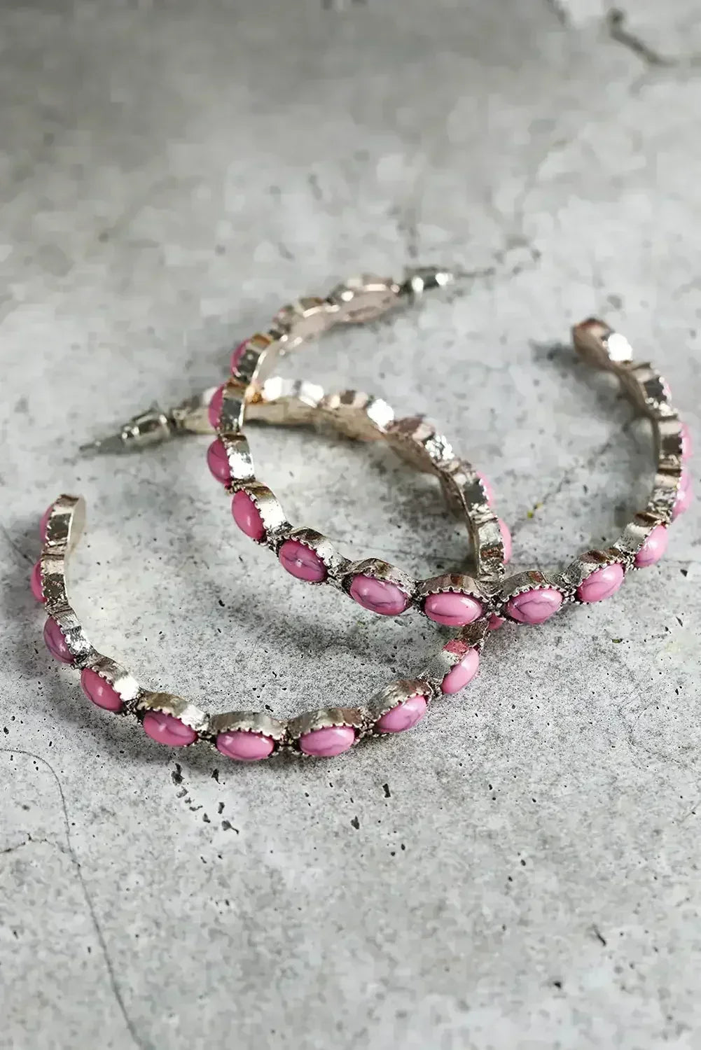 Turquoise C-Shape Hoop Earrings | Bold Statement Earrings - Femstylo